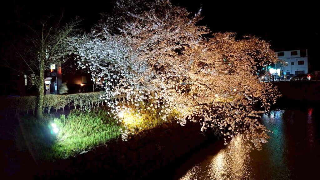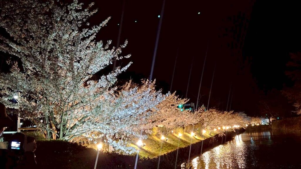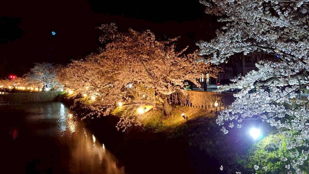 夜桜会と同時開催される、「光の回廊」は、お城を囲む約1.5kmの桜並木を美しくライトアップ✨️